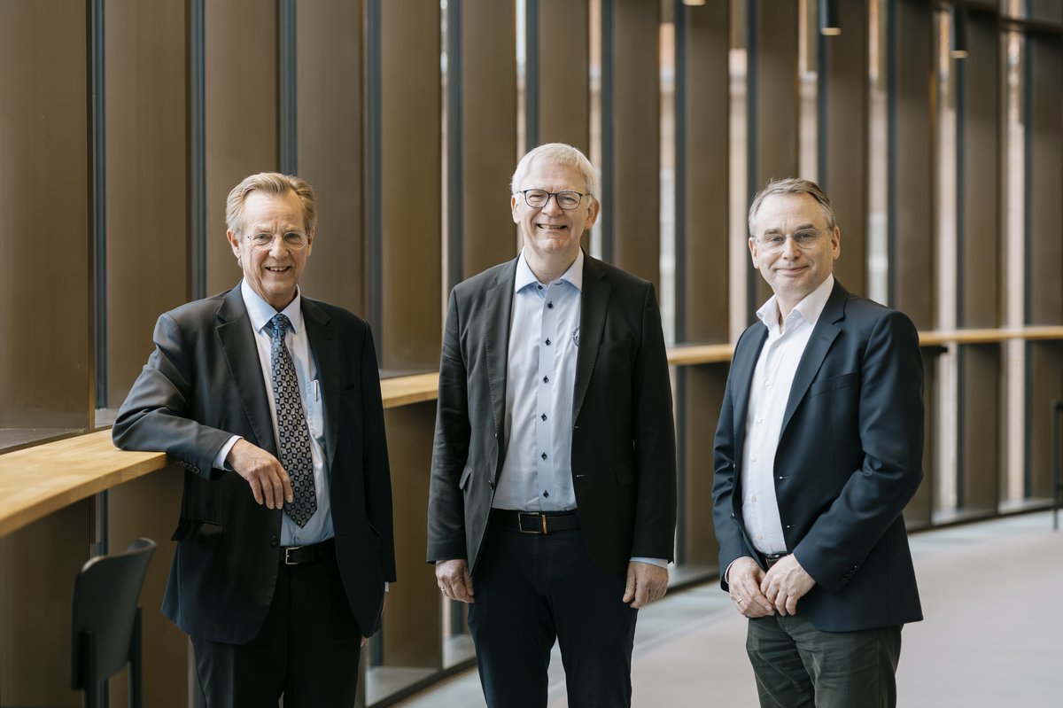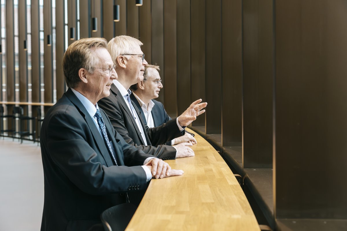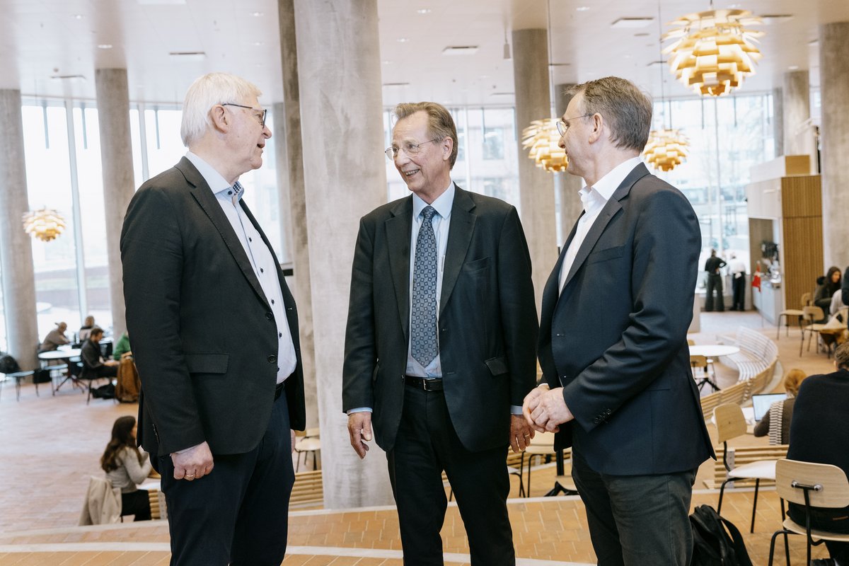 Ved siden af ham nikker de to øvrige bygherrer bag Universitetsbyen.